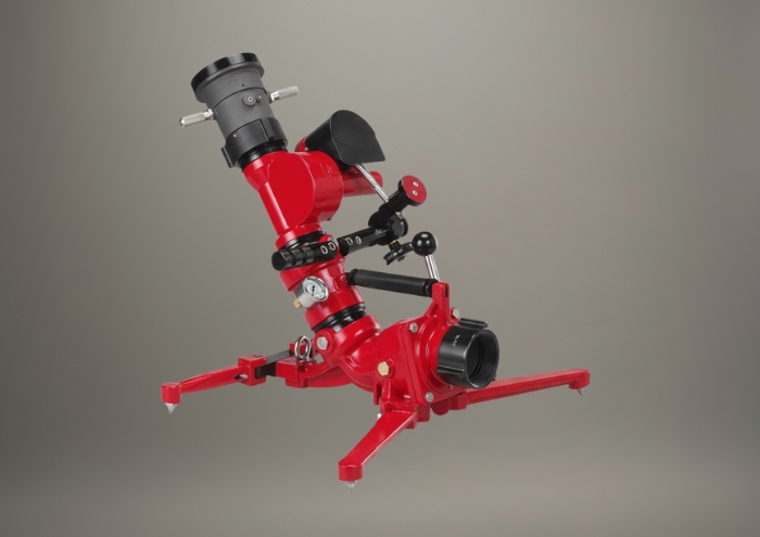 Self-oscillating 625 portable monitor: Adjustable flow rate of 660-850-1325 and 1900 l/min, with Barcelona fitting in stamped, hard-anodized aluminum, Ø 70 mm according to UNE 23.400-3. Weight: 13 kg without lance. Optimum pressure: 7 bar. Maximum pressure: 10 bar. Range: 55 m at maximum pressure.