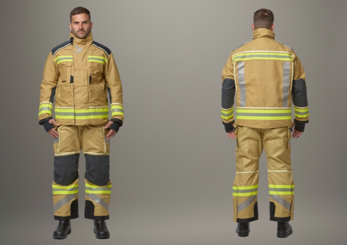 PPE consisting of a jacket and overpants intended to protect the user's entire body, except for the head, hands, and feet. It protects against hazards in firefighting operations and associated activities where there is a risk of heat and/or flames, and against the buildup of electrostatic charges to prevent incendiary discharges.