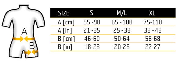 Allows freedom of movement without compromising safety. NEVER FOR FALLS. Suitable for placement inside the protective pants/bib.